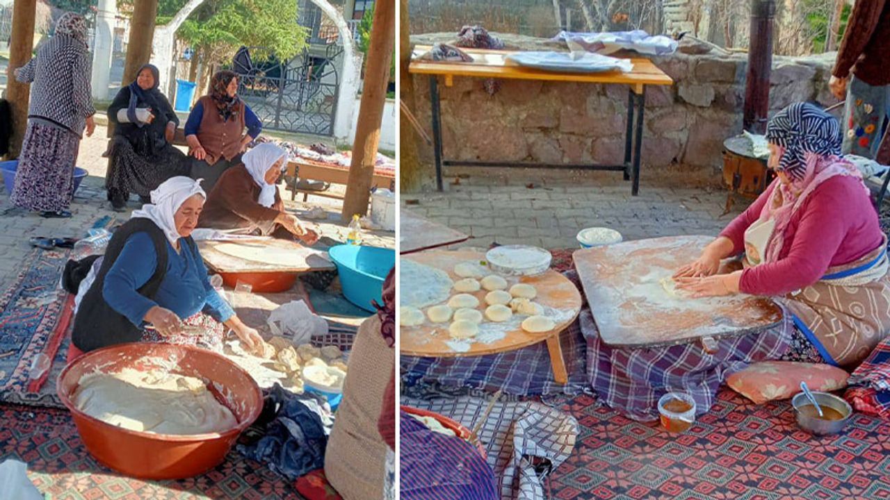 Kütahya’nın Gediz ilçesinde kadınlar kolların Kur’an kursu inşaatı için sıvadı. Kadınların el lezzetleri kermeste satışa sunuldu.