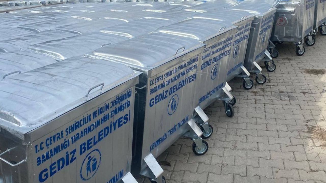 Çevre, Şehircilik ve İklim Değişikliği Bakanlığı tarafından hibe edilen çöp konteynerleri, Gediz Belediyesi Temizlik İşleri birimi tarafından teslim alındı.