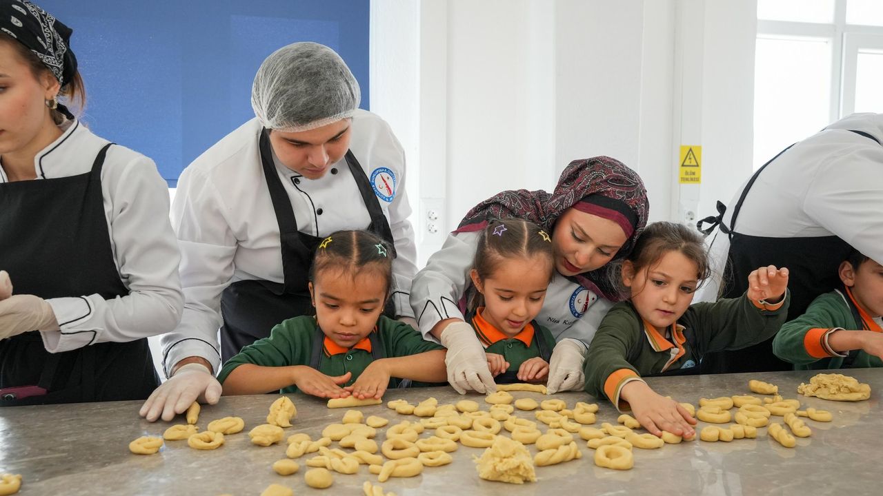 “Minik Eller, Büyük Hedefler İçin Birleşti” adıyla düzenlenen etkinlikte, ilkokul öğrencileri aşçılık bölümü öğrencileriyle birlikte çeşitli uygulamalara katıldı.