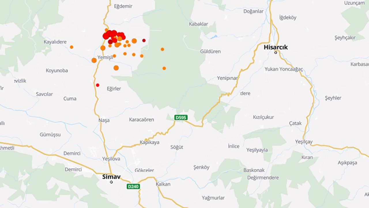 Boğaziçi Üniversitesi Kandilli Rasathanesi verilerine göre, Simav ilçe merkezine 18 kilometre uzaklıktaki Yemişli köyünde 19 Nisan’da başlayan sarsıntılar devam ediyor.