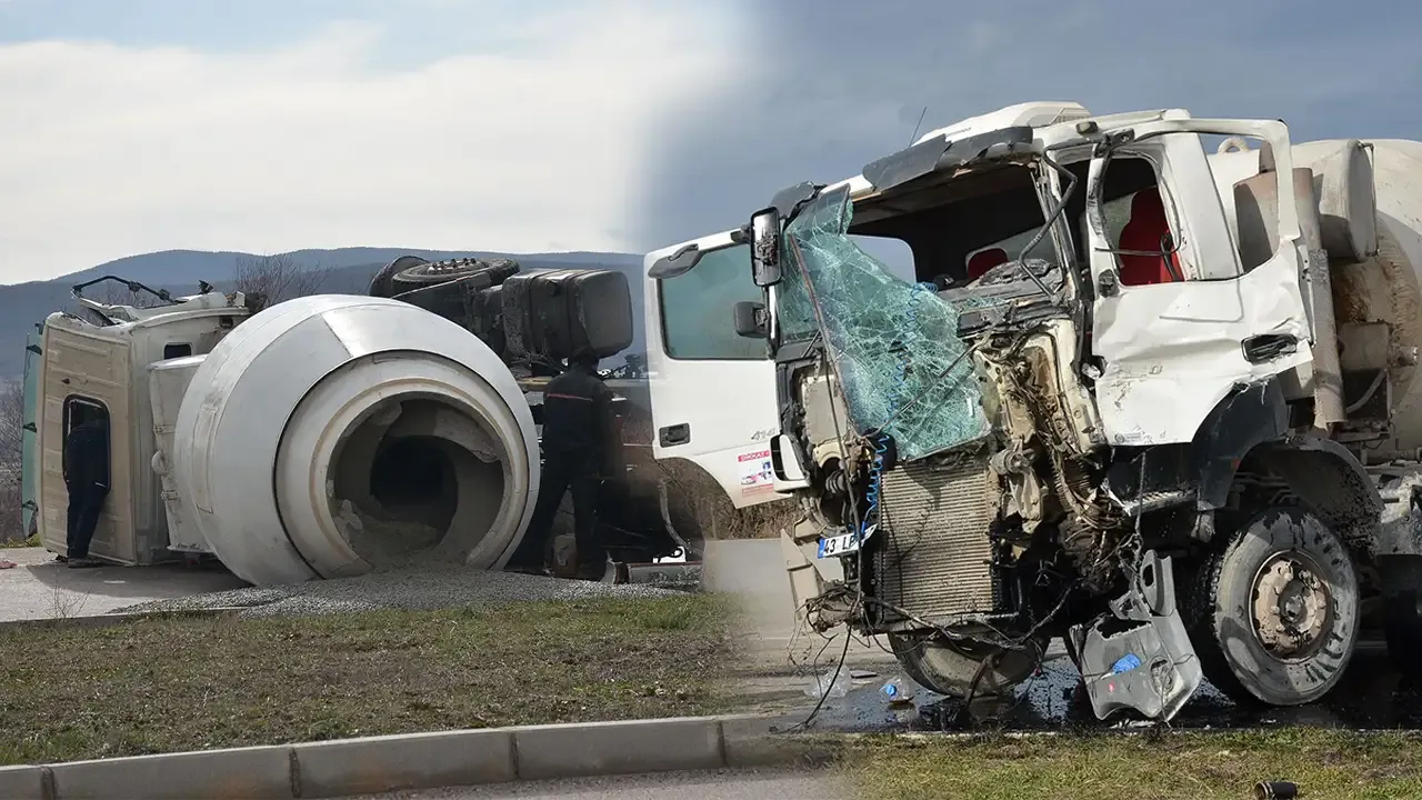 Çarpışmanın etkisiyle mikserlerden birinin devrilirken, sürücüler yaralandı.