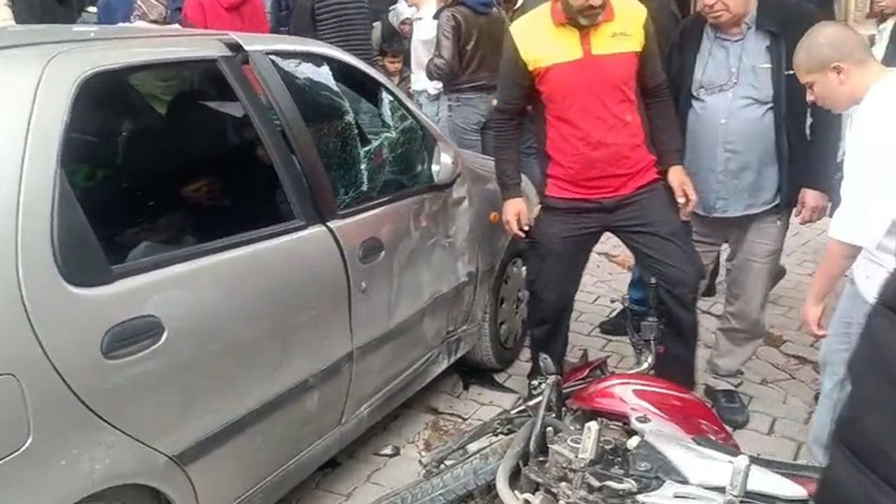 Sürücülerinin ismi henüz belirlenemeyen motosiklet, caddede dönmek istediği sırada ana caddede ilerleyen otomobile yandan çarptı.