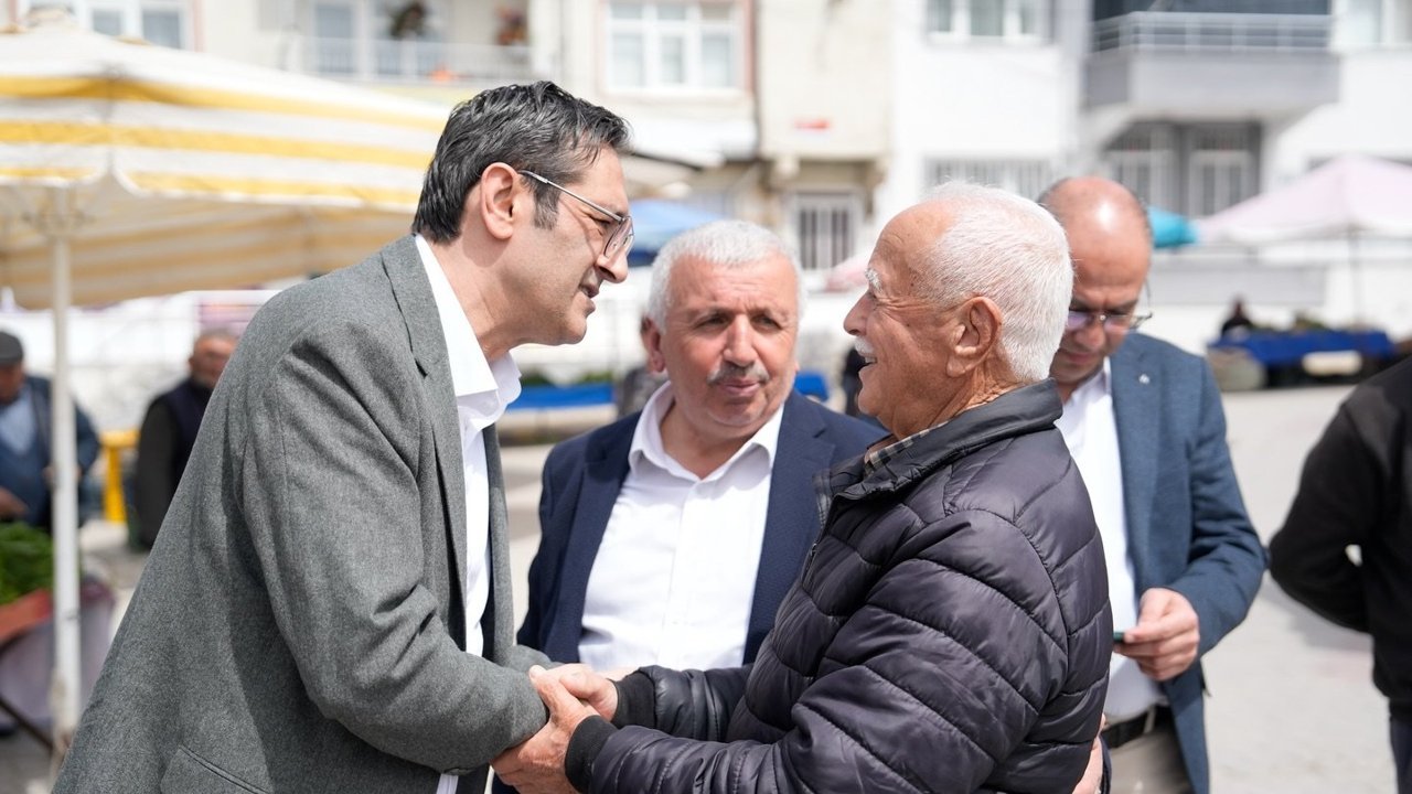 Belediye Başkanı Derin, pazar alanında esnaf ve vatandaşlarla görüşerek mevcut düzenlemeye ilişkin talep ve görüşleri dinledi.