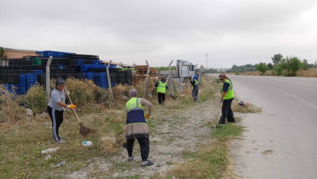 Yapılan çalışmalarda, hal çevresinde biriken çöpler toplanırken, yol kenarlarında ve kaldırımlarda uzayan yabani otlar da temizlendi.