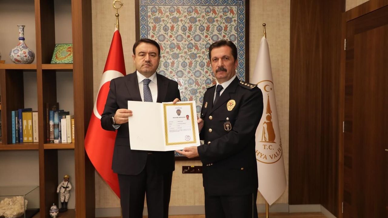Vali Musa Işın, görevlerinde üstün gayret ve başarı gösteren emniyet personeline başarı belgelerini takdim etti.