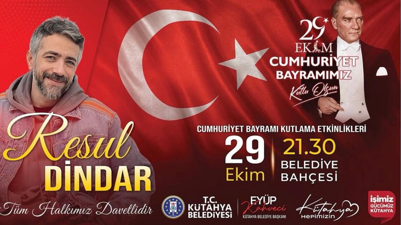 Kütahya Belediyesi, Cumhuriyetimizin 102. yılını coşkuyla kutlamaya hazırlanıyor. 29 Ekim Cumhuriyet Bayramı dolayısıyla düzenlenecek olan etkinliklerde ünlü sanatçı Resul Dindar sahne alacak.