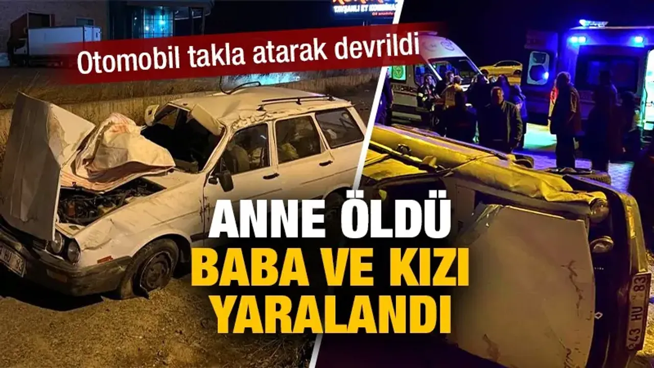 Kütahya'nın Tavşanlı ilçesinde otomobilin devrilmesi sonucu meydana gelen trafik kazasında anne öldü, baba ve kızı ağır yaralandı.