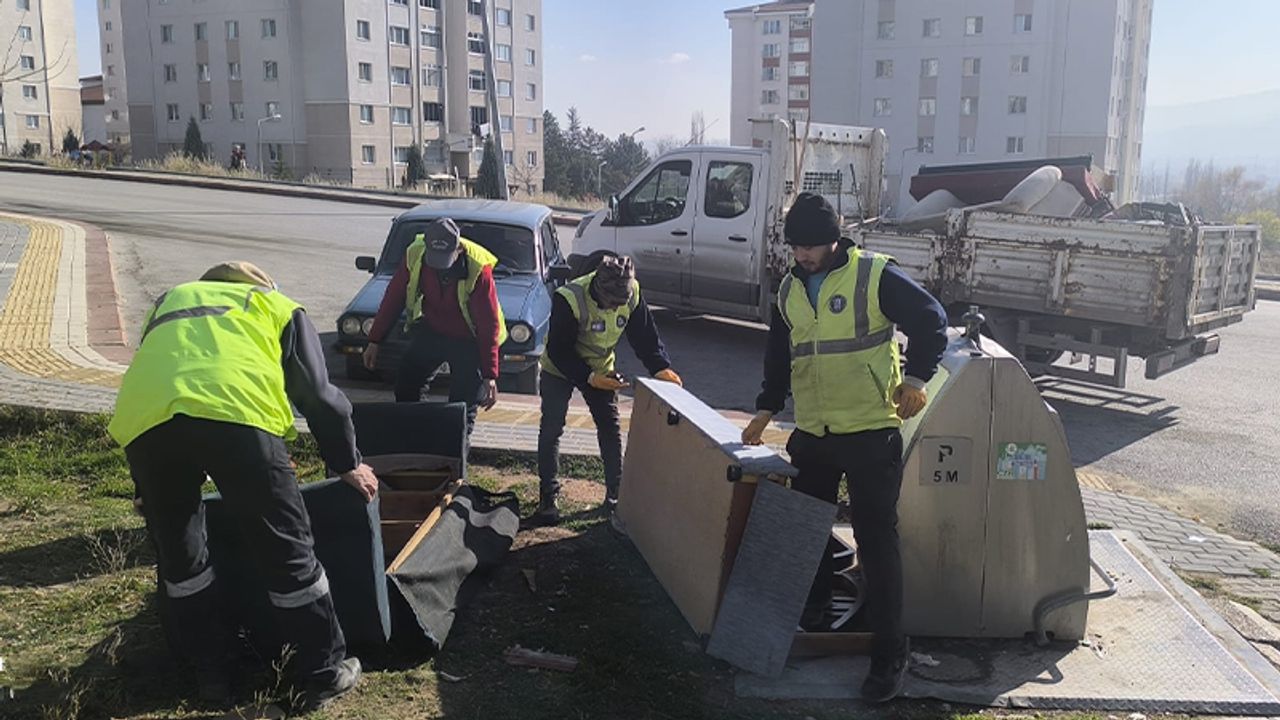 Kütahya Belediyesi Temizlik İşleri Müdürlüğü ekipleri, Akkent Mahallesi’nde çöp konteyneri yanına bırakılan evsel atıkları toplayarak bölgeyi temizledi.