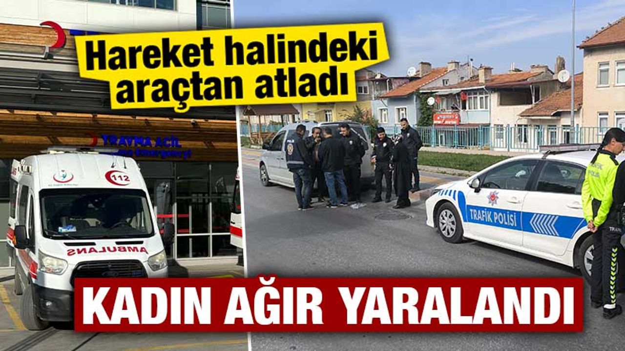 Kütahya'da, hareket halindeki araçtan atlayan yabancı uyruklu kadın ağır yaralandı.