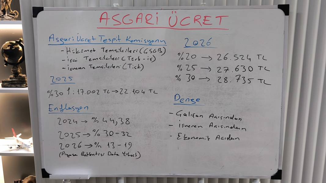 “2026’da ise Merkez Bankası'nın beklentisi yüzde 13-19 bandında ama piyasa beklentileri biraz daha yüksek. Bu haliyle yüzde 21 artış olursa nette 26 bin 524 lira, yüzde 25 artış olursa 27 bin 630 lira, yüzde 30’luk bir artış olursa da 28 bin 735 lira rakamlarını görmüş olacağız.”