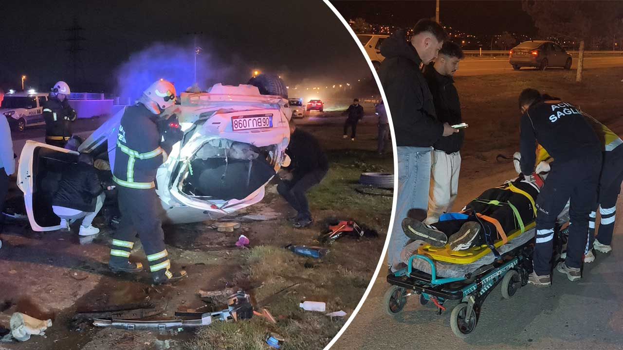 Otomobil daha sonra yol kenarındaki ağaçlara çarptıktan sonra takla atıp devrildi.