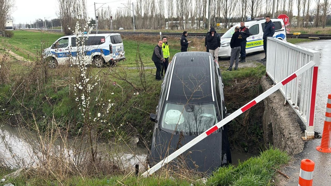 Kütahya Hava Er Eğitim Tugay Komutanlığı istikametinden gelen Ahmet E. idaresindeki plakalı lüks araç, köprüden geçtiği sırada kontrolden çıkarak hemzemin geçit yanında bulunan sulama kanalına uçtu.
