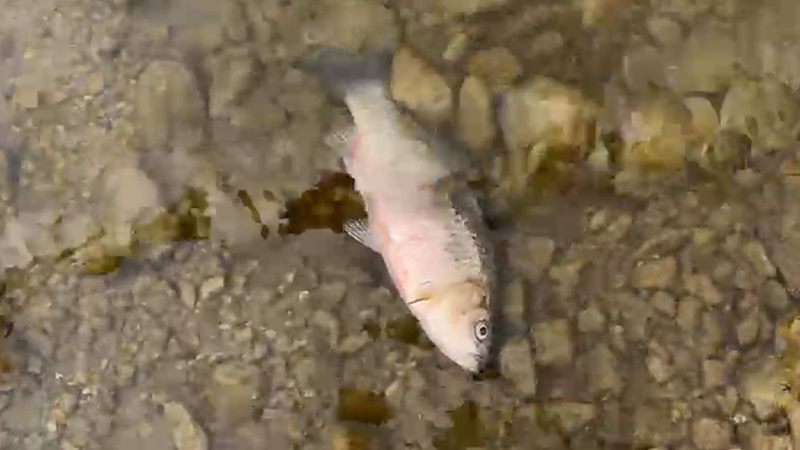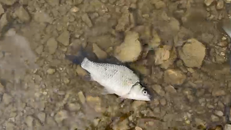 Ölü balıkları görenler, durumu cep telefonu kamerası ile kaydetti.