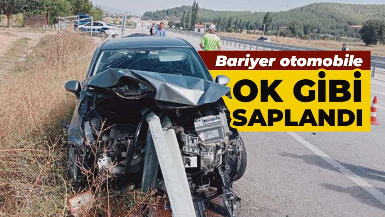 Çarpmanın etkisiyle otomobilin orta kısmına saplanan bariyer, arka kısmından çıktı.