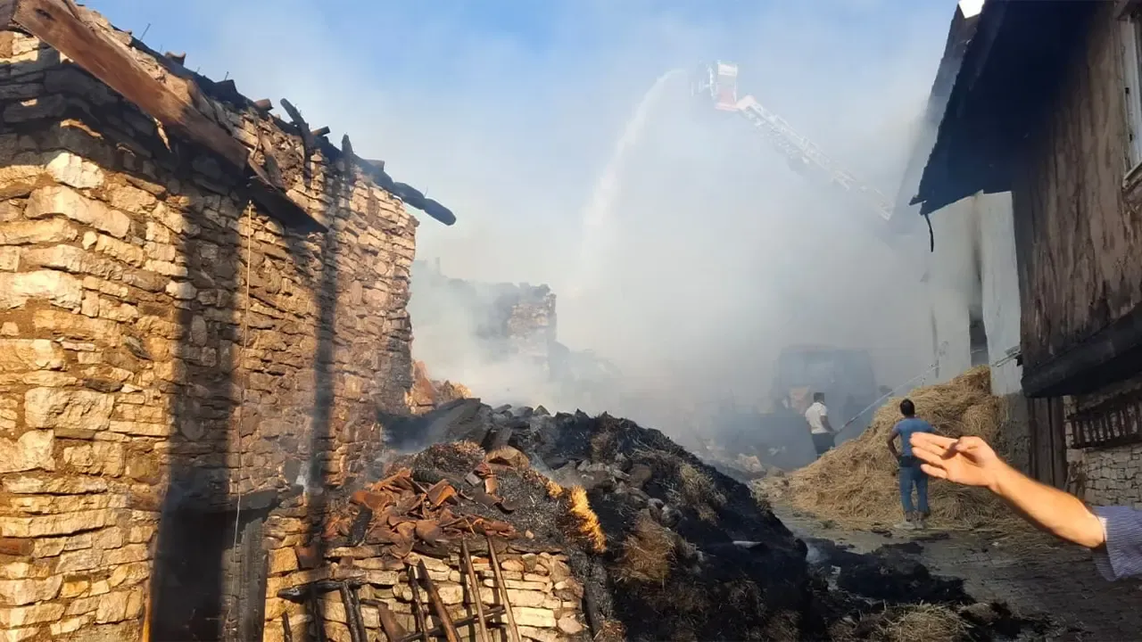 Kütahya'nın Emet ilçesinde, bir köyde çıkan büyük yangında 2 ev 4 samanlık yanarak kullanılamaz hale geldi.