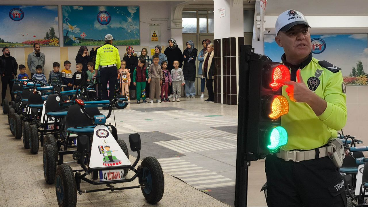 Okulda eğitim için hazırlanan özel parkurda, trafik kuralları uygulamalı olarak anlatıldı.