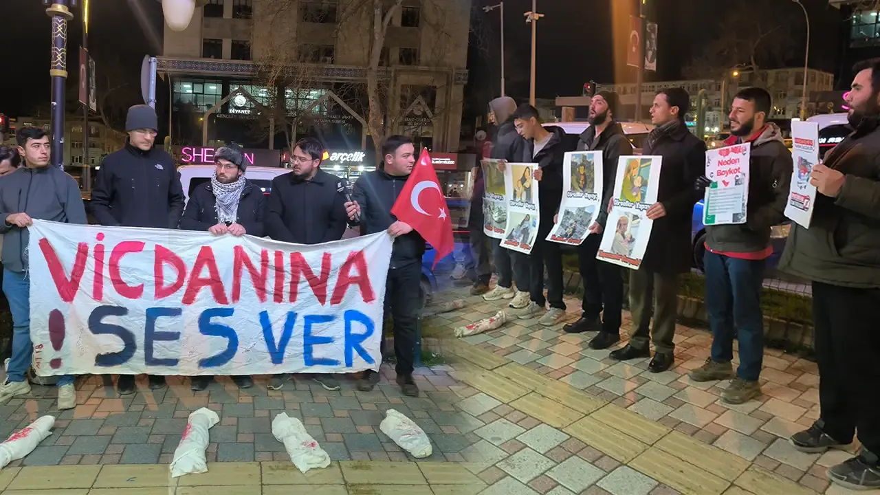 Bu kapsamda, yaklaşık 50 kişilik bir grup Atatürk Bulvarı’ndaki Burger King şubesi önünde protesto eylemi gerçekleştirdi.