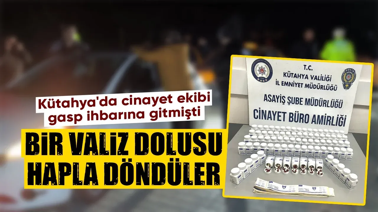 Kütahya'da gasp iddiası ihbarına giden cinayet ekibi, 4 bin 750 adet sentetik uyuşturucu hap ele geçirdi.
