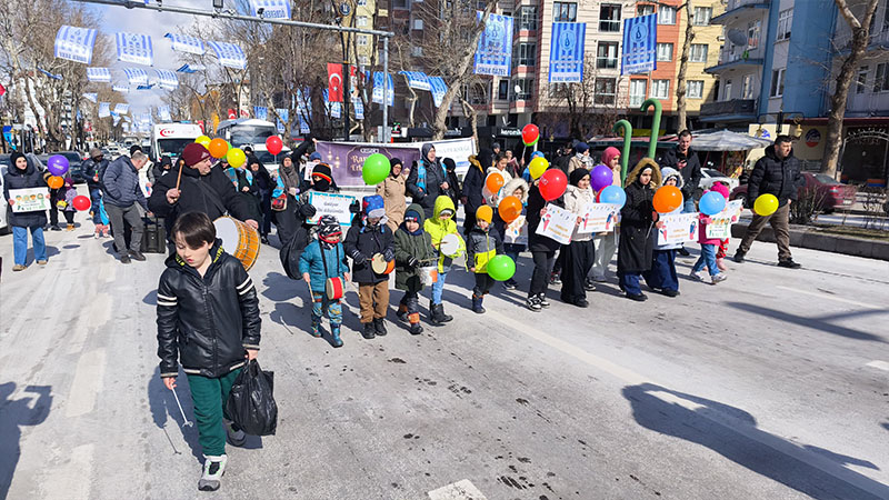 Kütahya Belediyesi binası önünde bir araya gelen dernek yöneticileri, gönüllüler ve çocuklar, davul ve ezgiler eşliğinde Atatürk Bulvarı boyunca yürüdü.