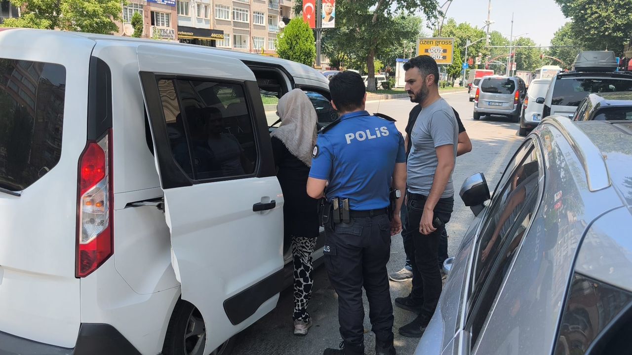 Atatürk Bulvarı’nda bir işletmenin önünde yanındaki çocuk ile dilencilik yaparken suçüstü yakalanan kadın ve çocuk, polis merkezine götürüldü.
