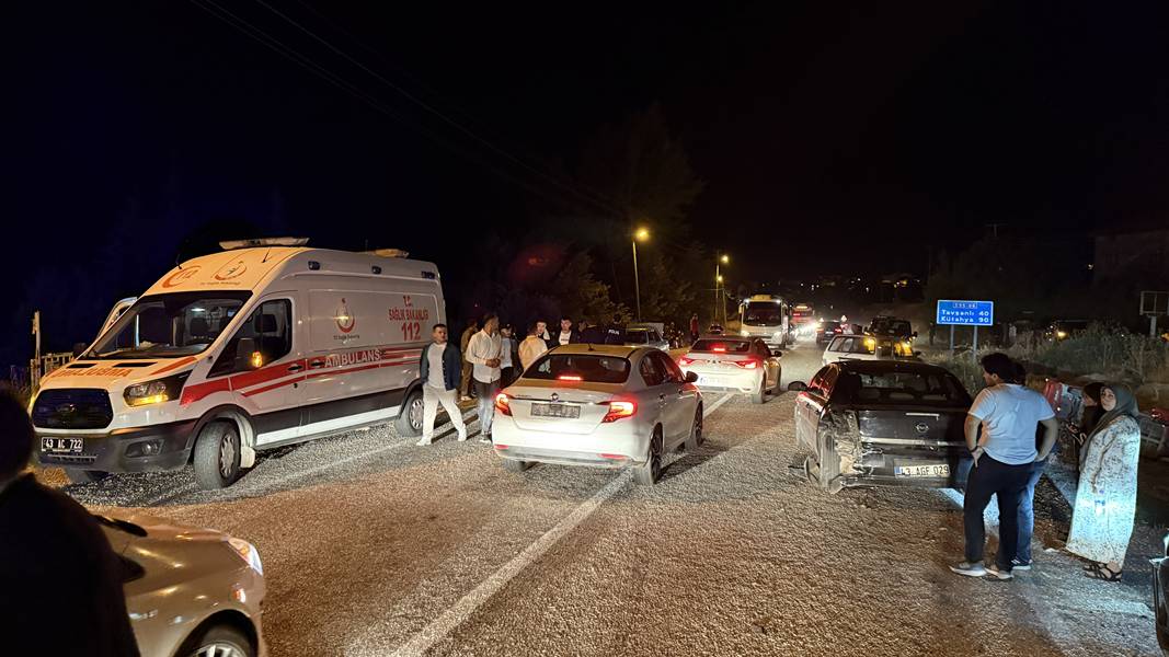 Kütahya’nın Domaniç ilçesinde motosiklete çarpan araca yardım için duran otomobile başka bir otomobil arkadan çarptı.