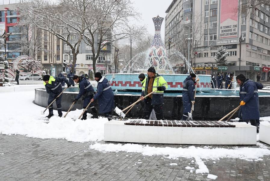 Belediye ekipleri, ana yollar, caddeler ve park alanlarını temizleyerek vatandaşların güvenliği ve ulaşımın aksamaması için 7/24 çalışmalarını sürdürüyor.
