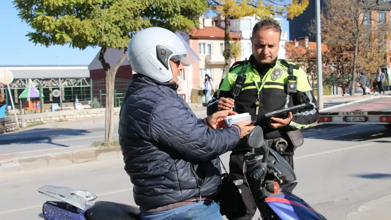 Kurala uymayan sürücülere idari para cezası uygulanırken, sürücülere kask takmanın önemi ile ilgili bilgiler verildi.