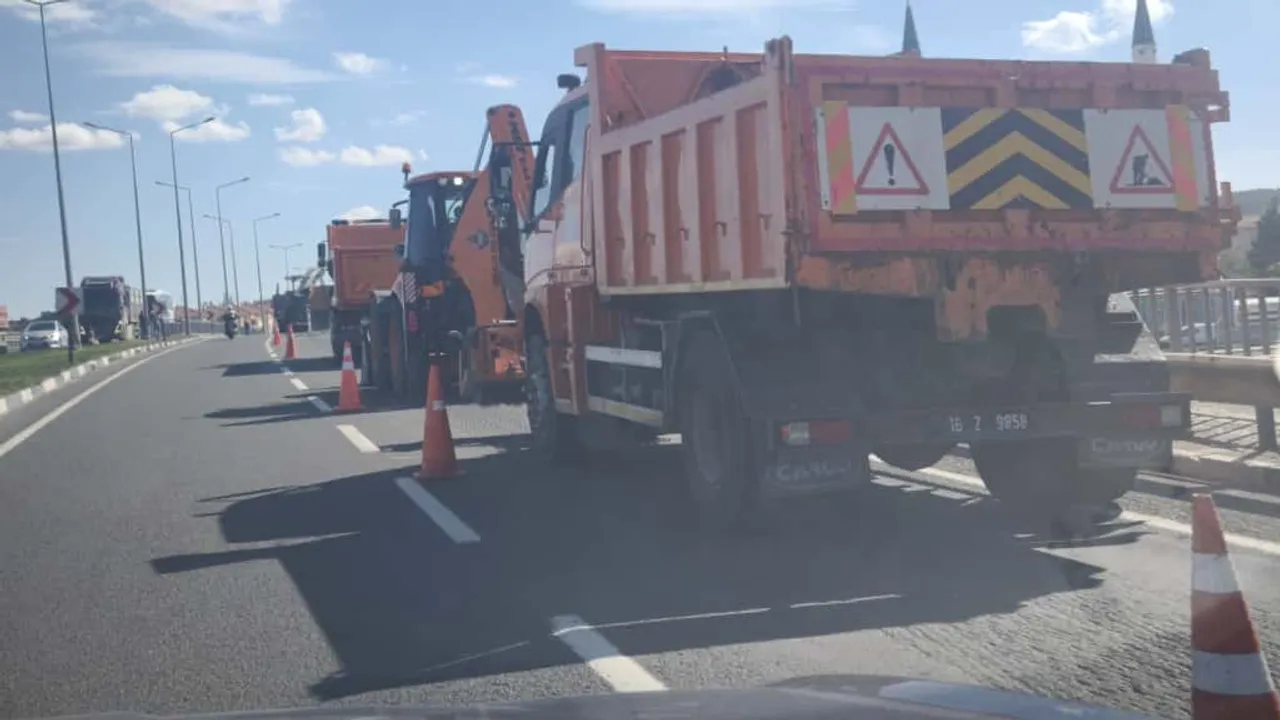 Karayolları Bölge Müdürlüğü ekipleri, Kütahya’da çevre yolunda asfalt yenileme ve düzeltme çalışması yapıyor.