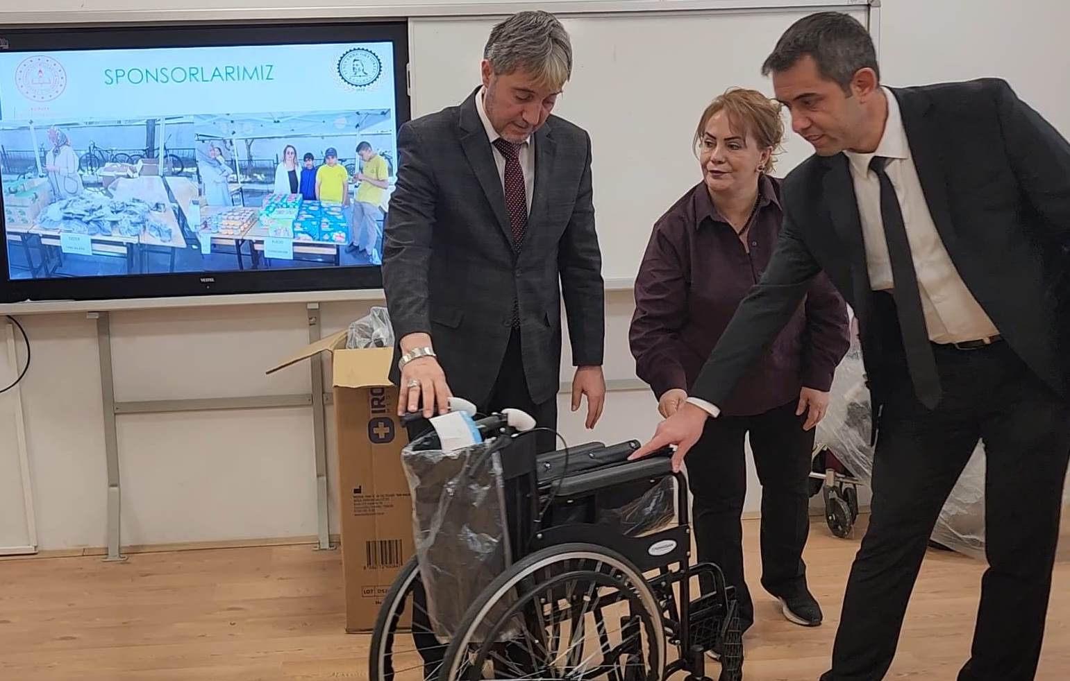 Yunus Emre Ortaokulu tarafından 2021 yılında başlatılan “Ailem ve Ben Çevreme Karşı Duyarlıyız” projesi çerçevesinde yapılan çalışmalarla 5 adet tekerlekli sandalye hazırlandı. Sandalyeler, İl Milli Eğitim Müdürlüğünde düzenlenen programla sahiplerine verildi.