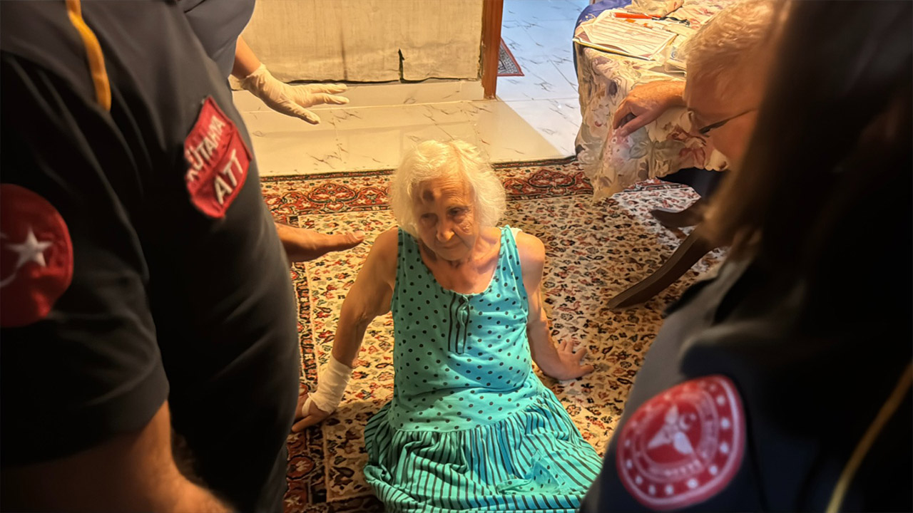 İhbar üzerine adrese gelen sağlık, itfaiye ve polis ekipleri, kapıyı çalarak yaşlı kadına seslenerek ulaşmaya çalıştı.