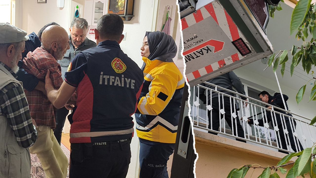 Yaşlı adamın, kilitli olan kapıyı açmak için gelemediğini söylemesi üzerine itfaiye ekibi 2. kattaki dairenin penceresinden girerek yaşlı adama ulaştı.