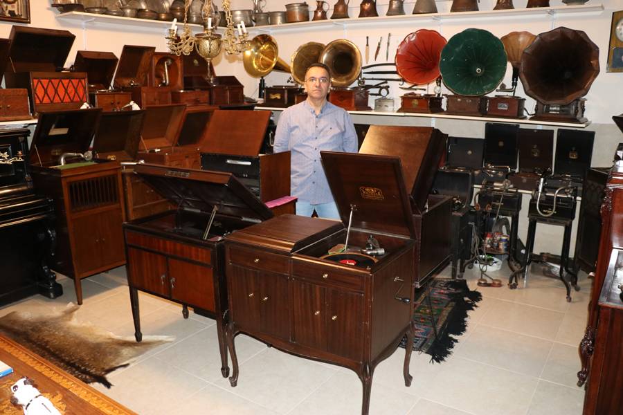 Yurt içi ve yurt dışından temin ettiği antikaları, adeta müzeye çevirdiği evinin bir odasında sergileyen Tanrıkulu, koleksiyonunda 2 laterna, 10 fonograf ve 43 gramofon bulunduğunu söyledi.