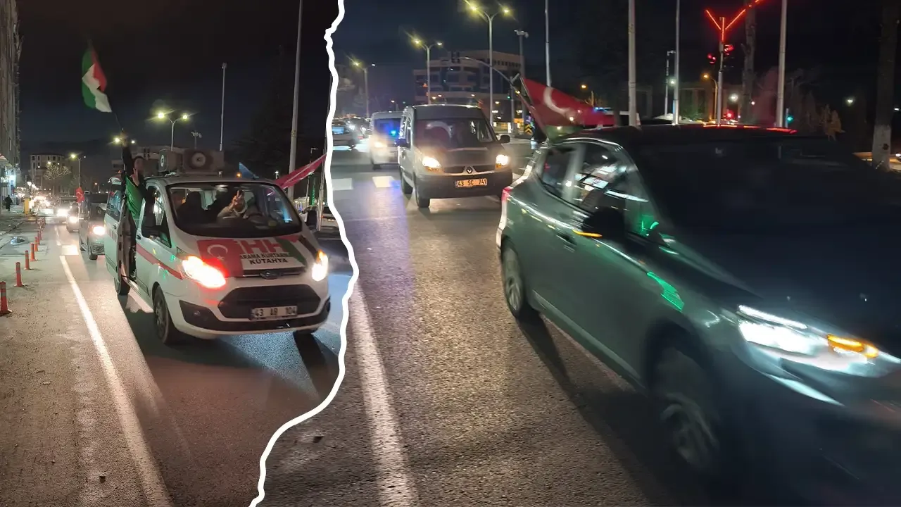 Ziraat Mahallesi’nde bir araya gelen vatandaşlar, araçlarıyla Adnan Menderes Bulvarı ve Atatürk Bulvarı’nda tur attıktan sonra Zafer Meydanı’nda konvoyu sonlandırdı.
