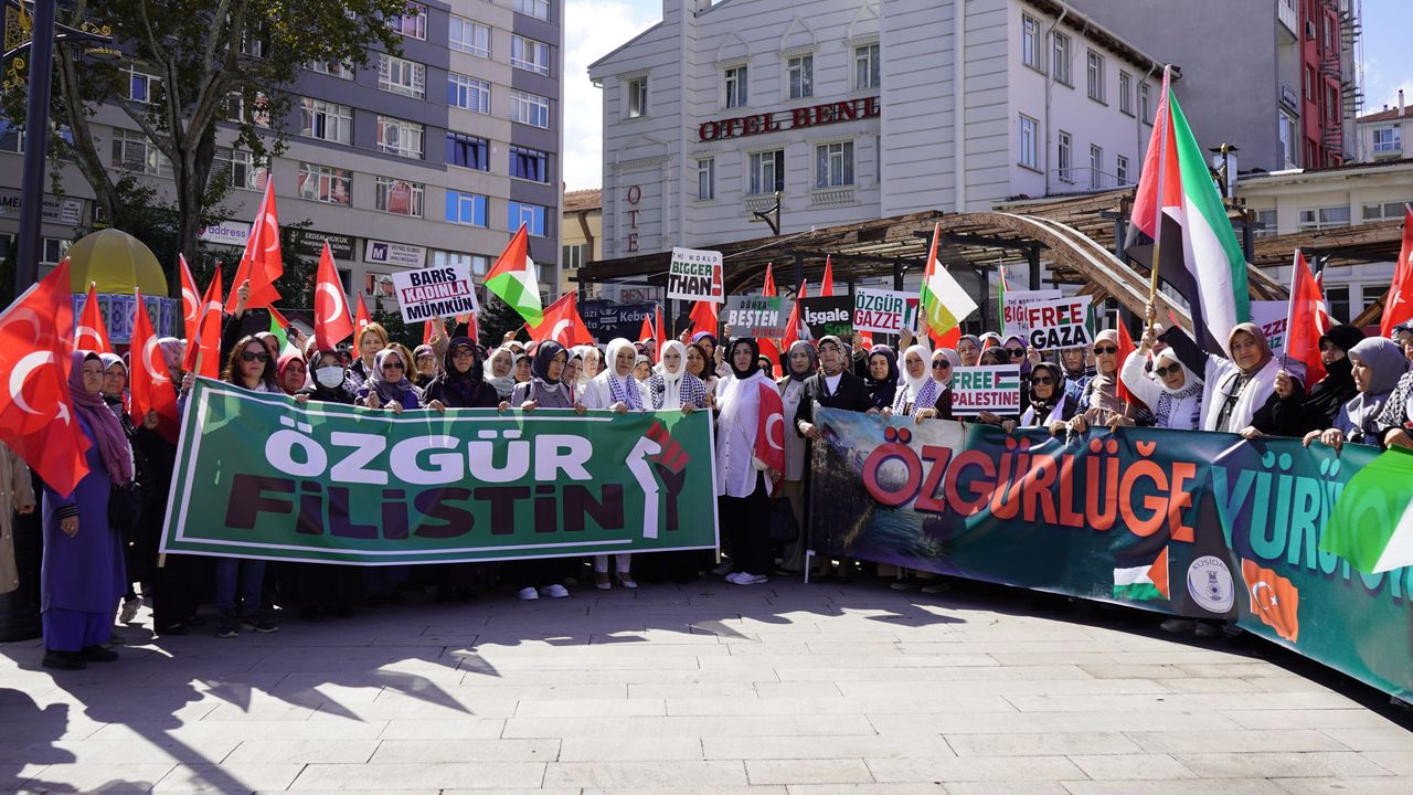 Türkiye'nin sessiz kalmadığını belirten Çakıcı, "Bugün kadınlar olarak Gazze’nin sessiz çığlığına ses olmak için el ele verdiğimizi tüm dünyaya göstermek adına meydanlardayız. Bugün 81 ilde kurduğumuz bu zincir, Gazze’de evlatlarını kaybeden anne-babaların zinciridir… Öksüz-yetim bırakılan çocukların zinciridir. Ve insanlığını kaybetmeyen herkesin zinciridir." ifadelerini kullandı.