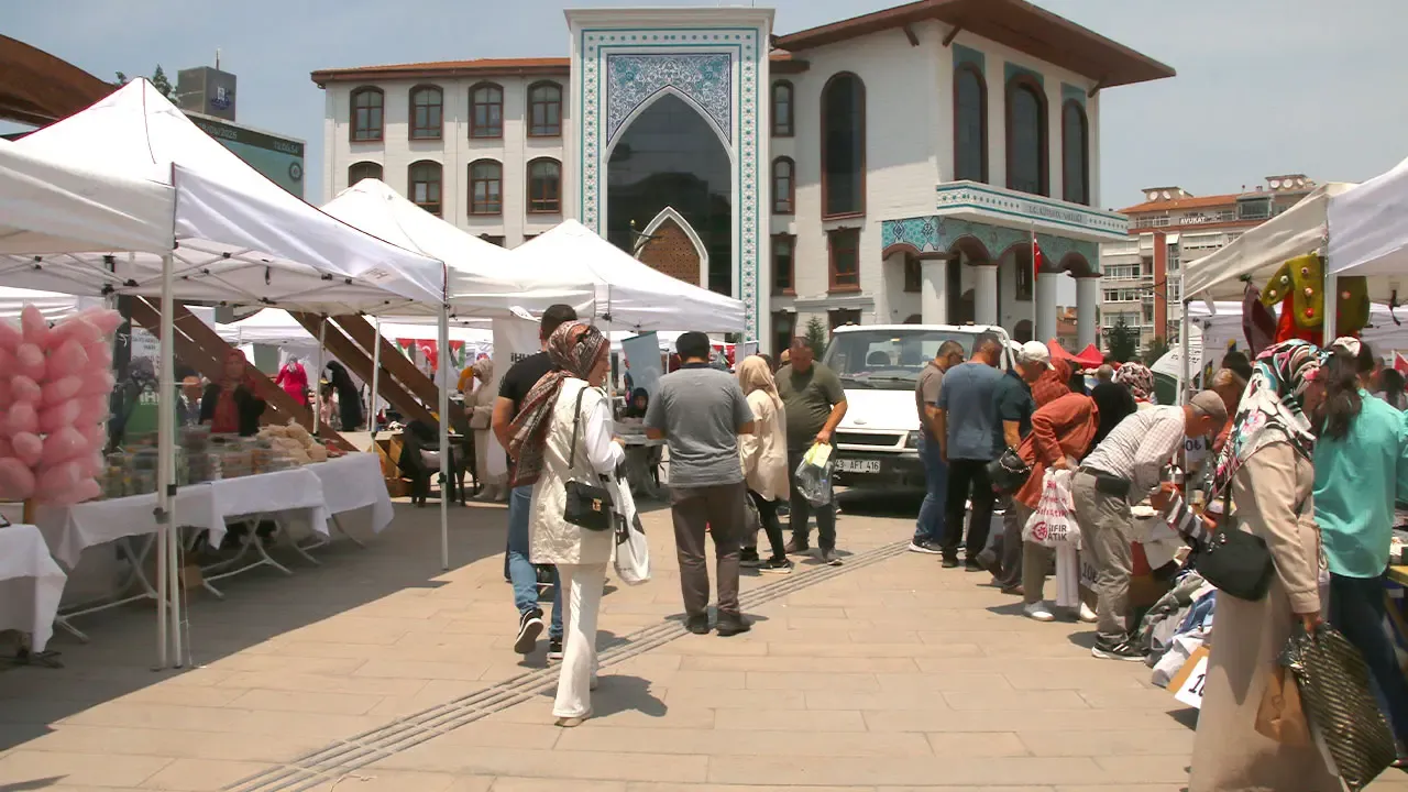 Zafer Meydanı’nda kurulan ve bir gün boyunca açık kalacak “Hayır çarşısı”nda yiyecek, içecek, kıyafet, tabak gibi ürünler satışa sunuldu.
