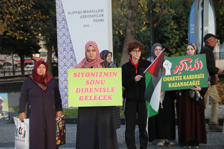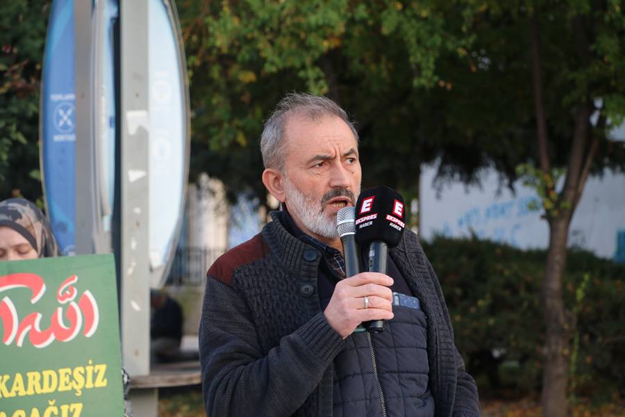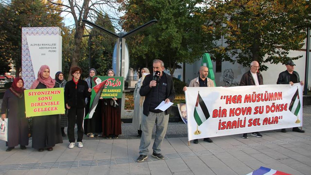 Grup adına konuşan Direniş Çadırı Kütahya Temsilcisi Coşkun Uzun, İsrail’e karşı sonuç alabilmenin tek seçeneğinin direniş olduğunu söyledi.