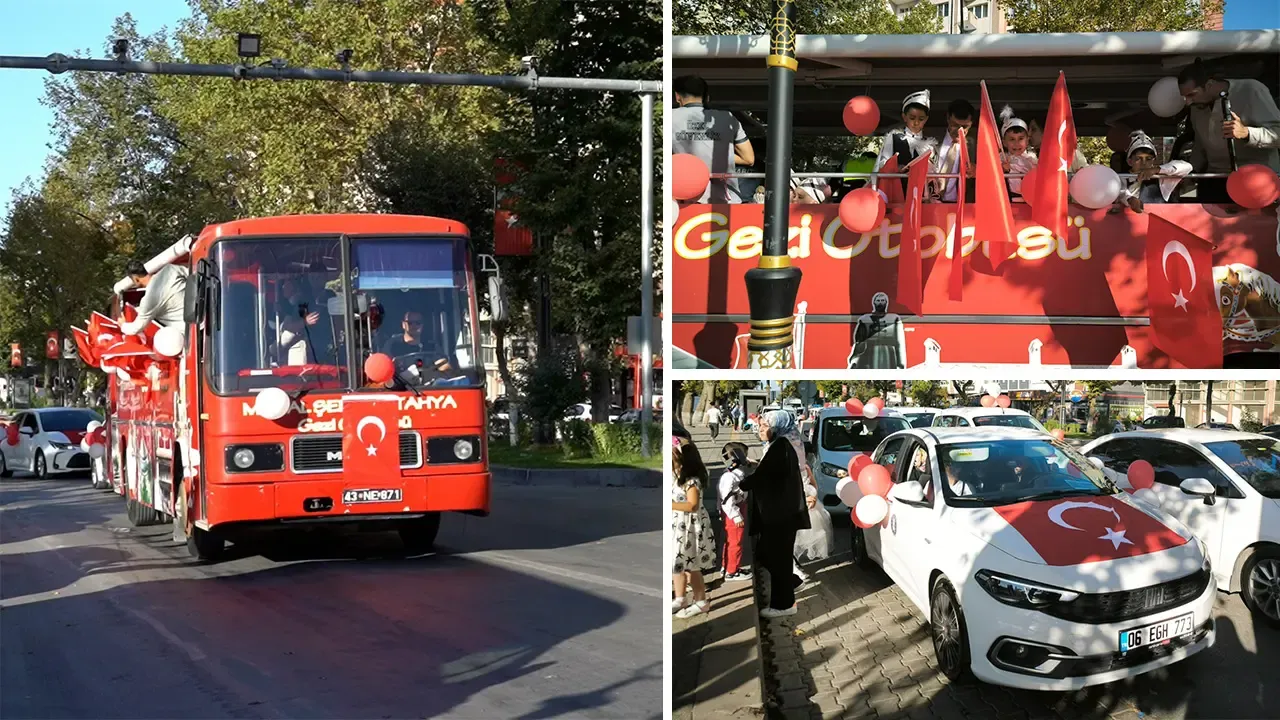 Belediye hizmet binası önünde bir araya gelen sünnet çocukları ve aileleri, kortej eşliğinde mini bir şehir turu attı.