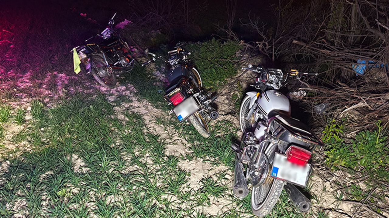 Polisin geldiğini gören gençler, yarıştıkları motosikletleri yol kenarındaki ekili araziye bırakıp kaçtı.