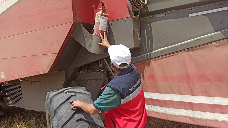 Tarım ve Orman Müdürlüğü ekipleri tarafından yürütülen denetimlerde, biçerdöver, balya ve hasat makinelerinin yangın söndürücü donanımları ile su tankları, operatörlerin yetki belgeleri, ayrıca elek temizliği ve ayar mekanizmaları detaylı şekilde kontrol edildi.