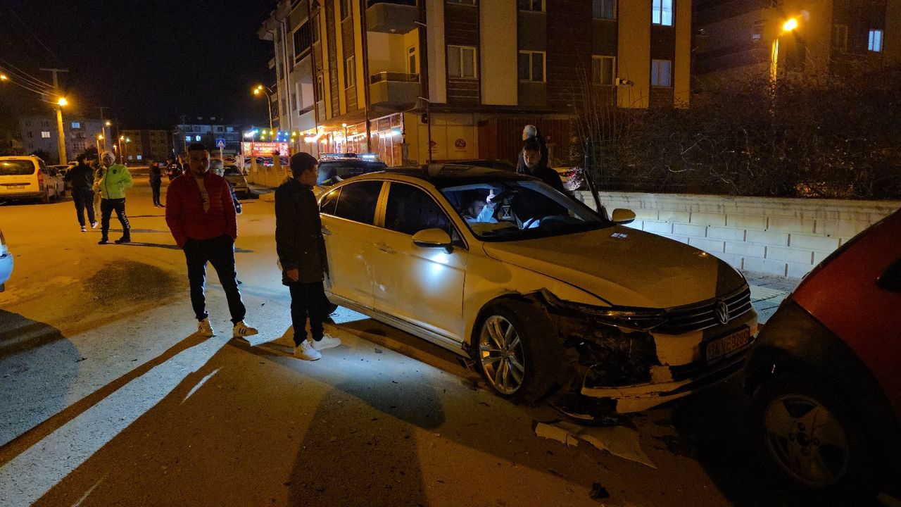 Sürücülerinin isimleri henüz öğrenilemeyen 34 VE 9289 plakalı otomobil tali yoldan ana caddeye çıkmak isterken 43 AAS 311 plakalı otomobile çarptı.