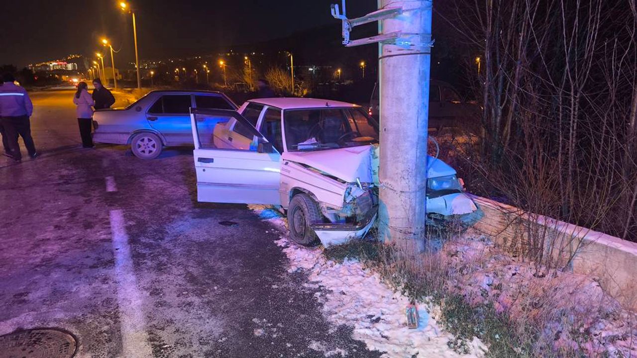 Kütahya’da hız ve hatalı sollama yapan otomobil, önce önündeki otomobile ardından da elektrik direğine çarptı. Kazada iki kişi yaralandı.