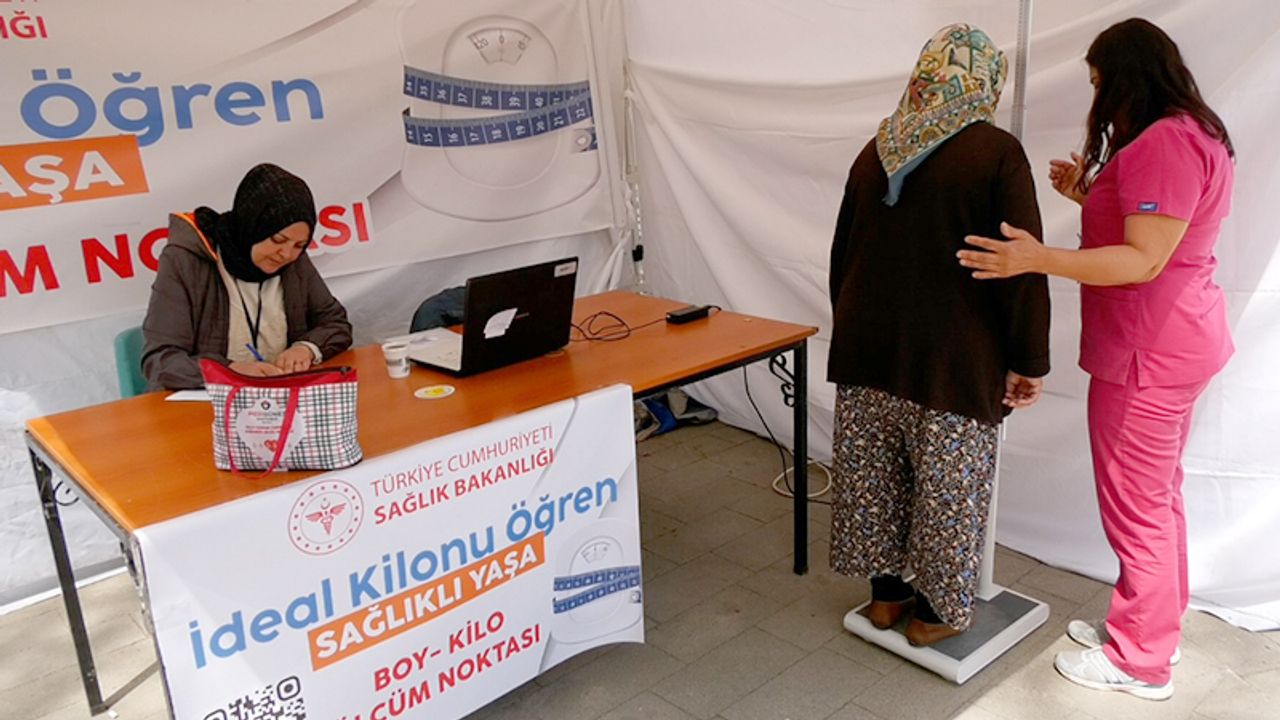 İl Sağlık Müdürlüğü kent merkezi ve ilçelerde kurduğu stantlarda vatandaşların boy ve kilo ölçümü yapıyor.