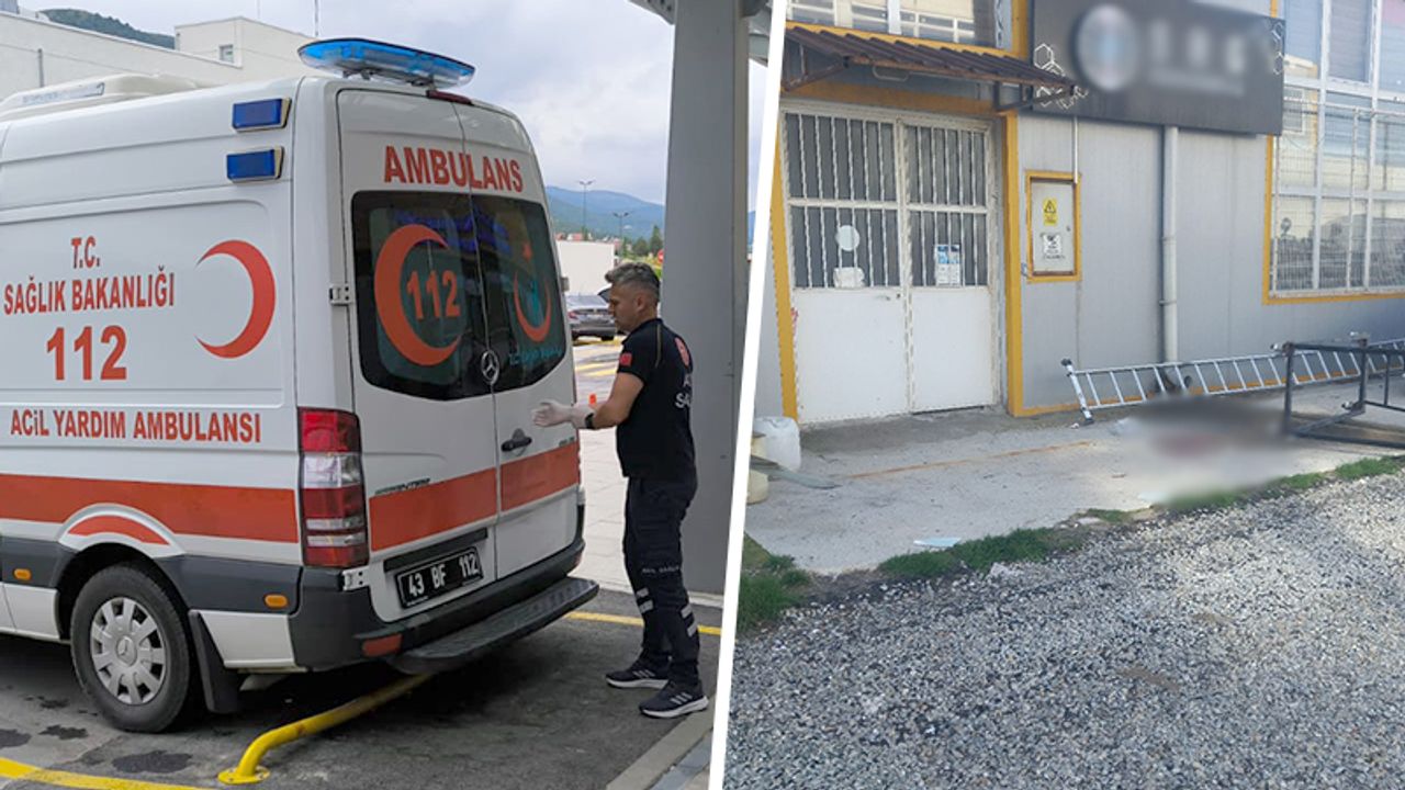İşletmesinin yağmur suyu tahliye borusunu değiştirmek için merdivenle çalışma yapan iki kişi, dengelerini kaybederek yaklaşık 5 metre yükseklikten beton zemine düştü.
