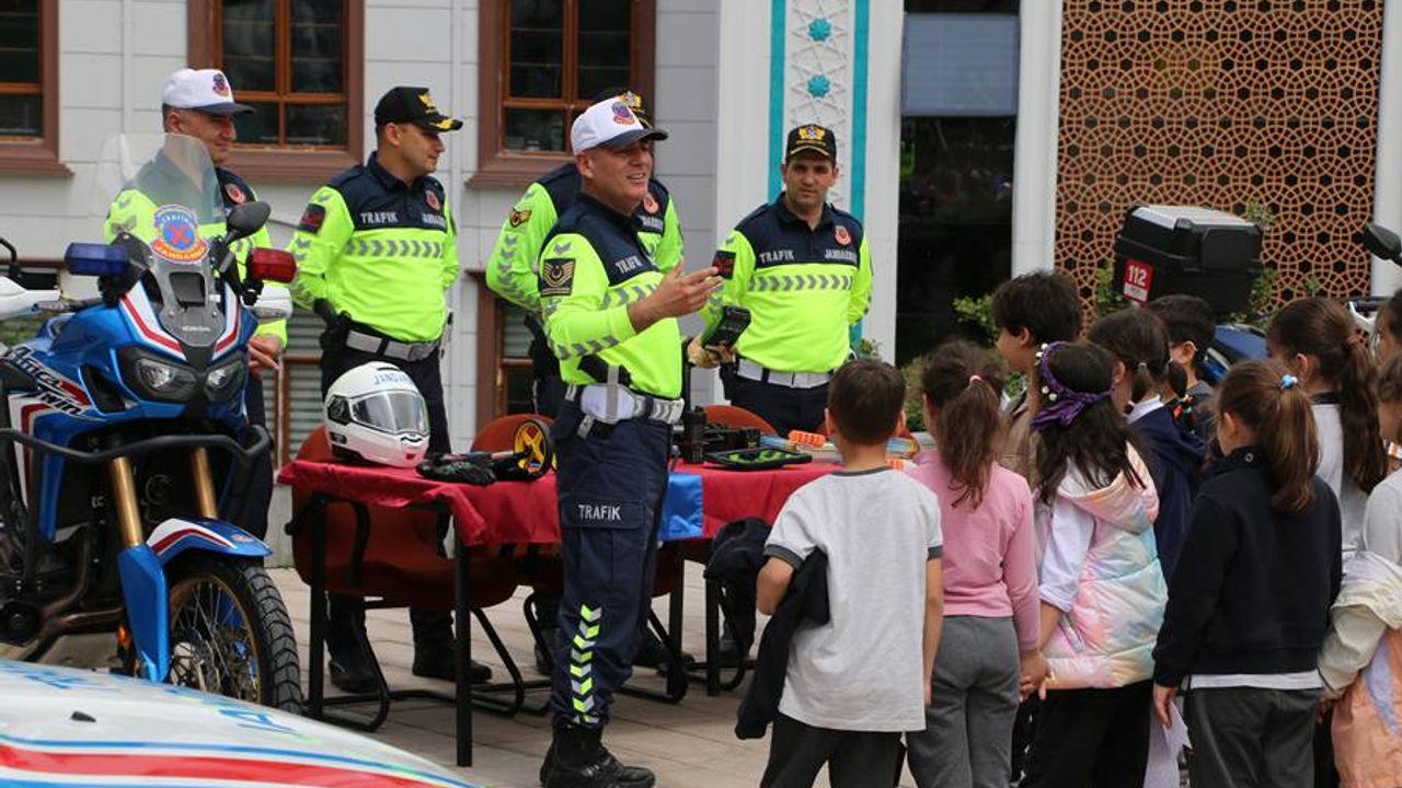 Trafik kuralları hakkında bilgiler veren ekipler, öğrencilere ailelerine de trafikte bu kuralları hatırlatmasını istedi.