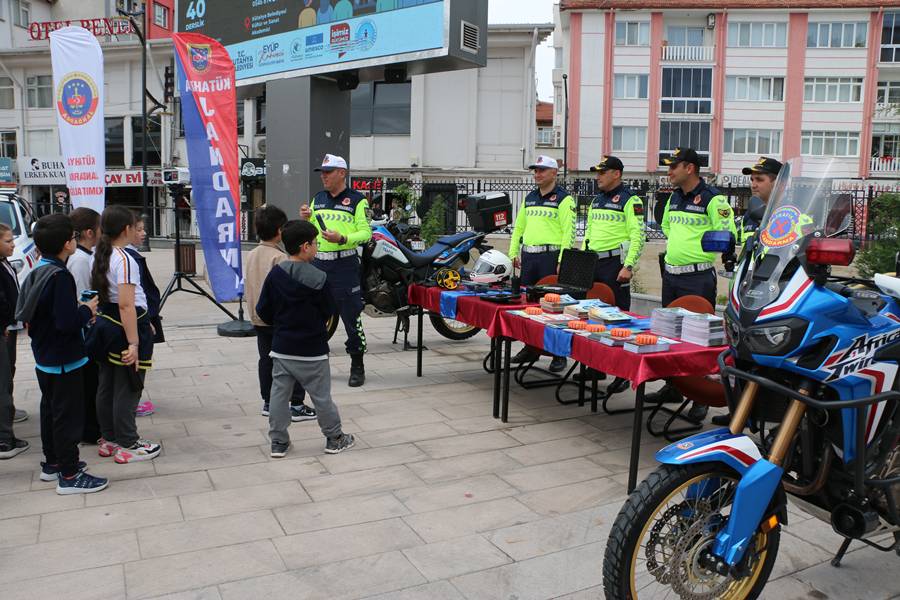 Zafer Meydanı’nda gerçekleştirilen etkinlikte vatandaşlara trafik kurallarına uymaları hakkında uyarılarda bulundu.