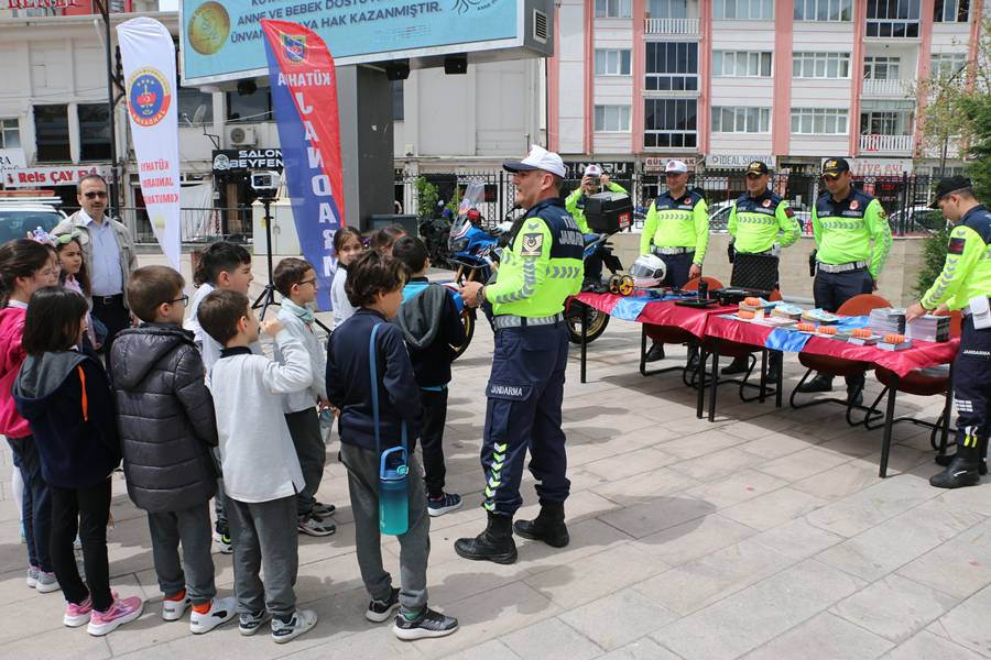 İl Jandarma Komutanlığı trafik jandarması, 3-9 Mayıs Trafik Haftası dolayısıyla vatandaşlar ve öğrencilerle buluştu.