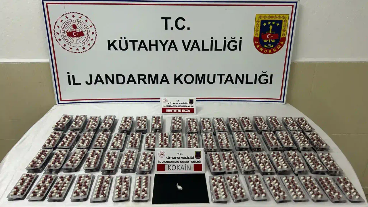 Operasyonda yapılan aramada 2 bin 870 adet sentetik ecza, 1 gram kokain maddesi ele geçirildi.