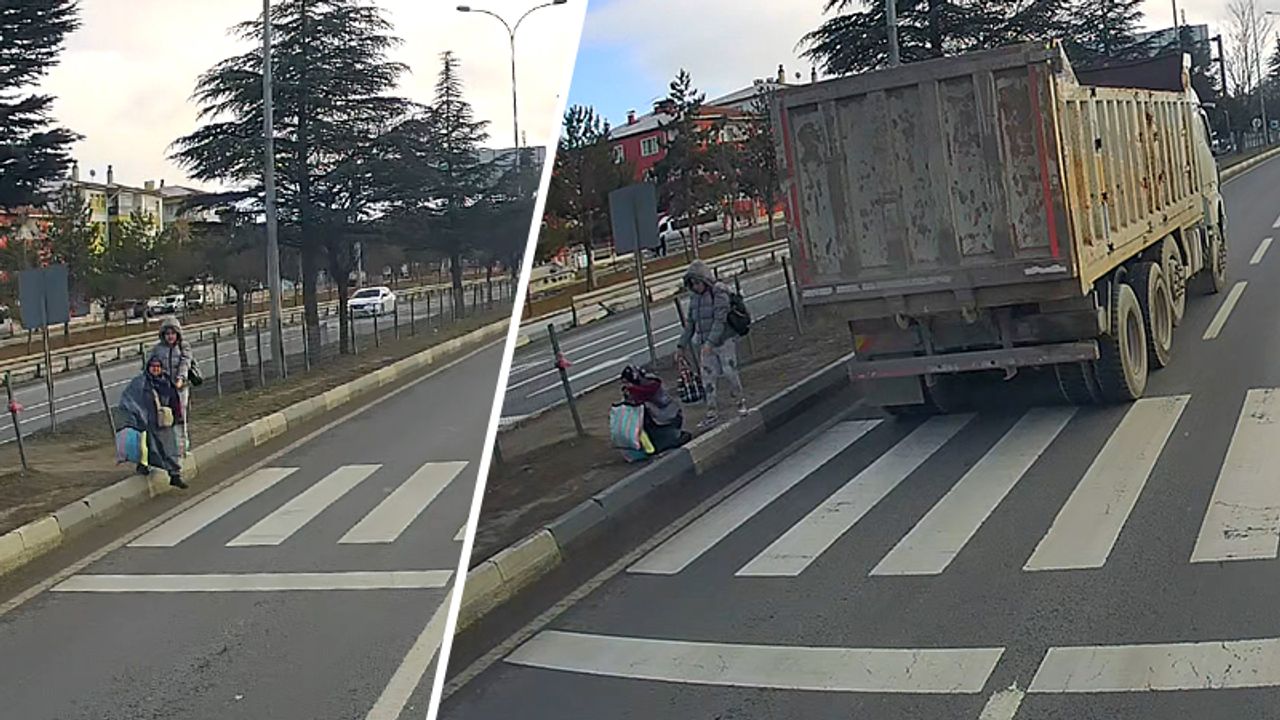 Kütahya'da kural tanımaz bir kamyon şoförü, yaya geçidinde az kalsın kadın ve çocuğu eziyordu. Olay anı ise bir araç kamerası tarafından kaydedildi.