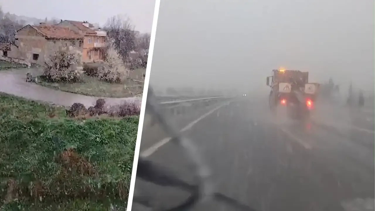 Ekspres Haber ihbar hattına gelen görüntülerde Kütahya-Seyitömer kara yolunda seyreden bir araç sürücüsü cep telefonu ile kar yağışını kaydetti.