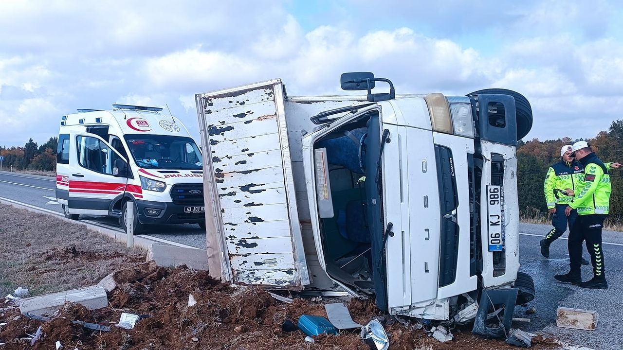 İsmail Özel'in kullandığı 06 KJ 986 plakalı kargo kamyonu, Çavdarhisar - Kütahya kara yolunun 13. kilometresinde kontrolden çıkarak refüje devrildi.